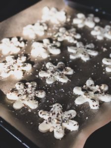 Reteta suna cam asa: 100 grame faina, 100 grame branza de vaci si 100 grame unt. Eu am adaugat si 50 de grame de parmezan.