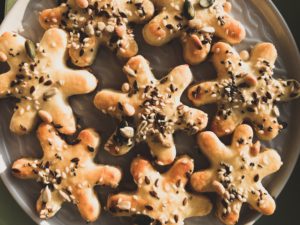 De asemenea, inainte sa ii bag la cuptor, i-am uns cu ou si am presarat un mix de seminte.