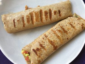 Am umplut apoi fiecare clatita, am rulat-o si am pus-o la grill.