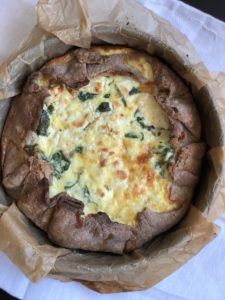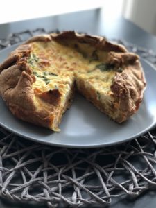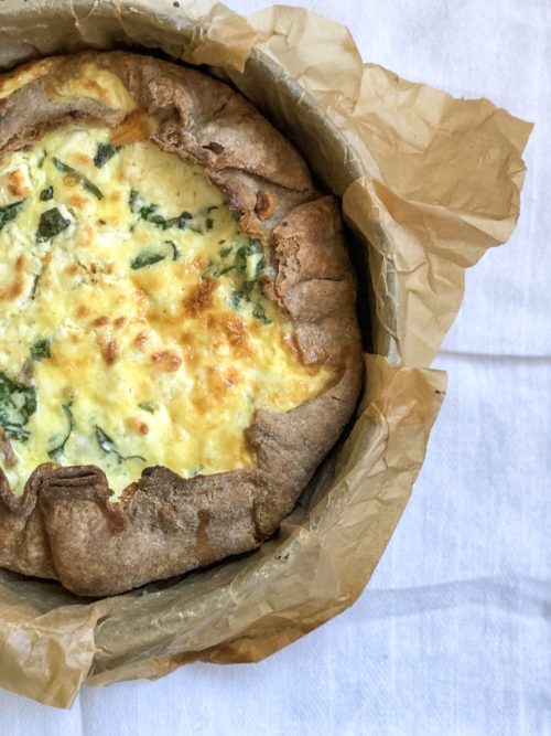 - am vrut sa merg pe varianta quicheului ‘cuib”, si nu pe cea a tartei. Asa ca, am folosit o forma de prajitura, inalta, si am decupat aluatul astfel incat marginea sa cada usor de pe peretii formei.
